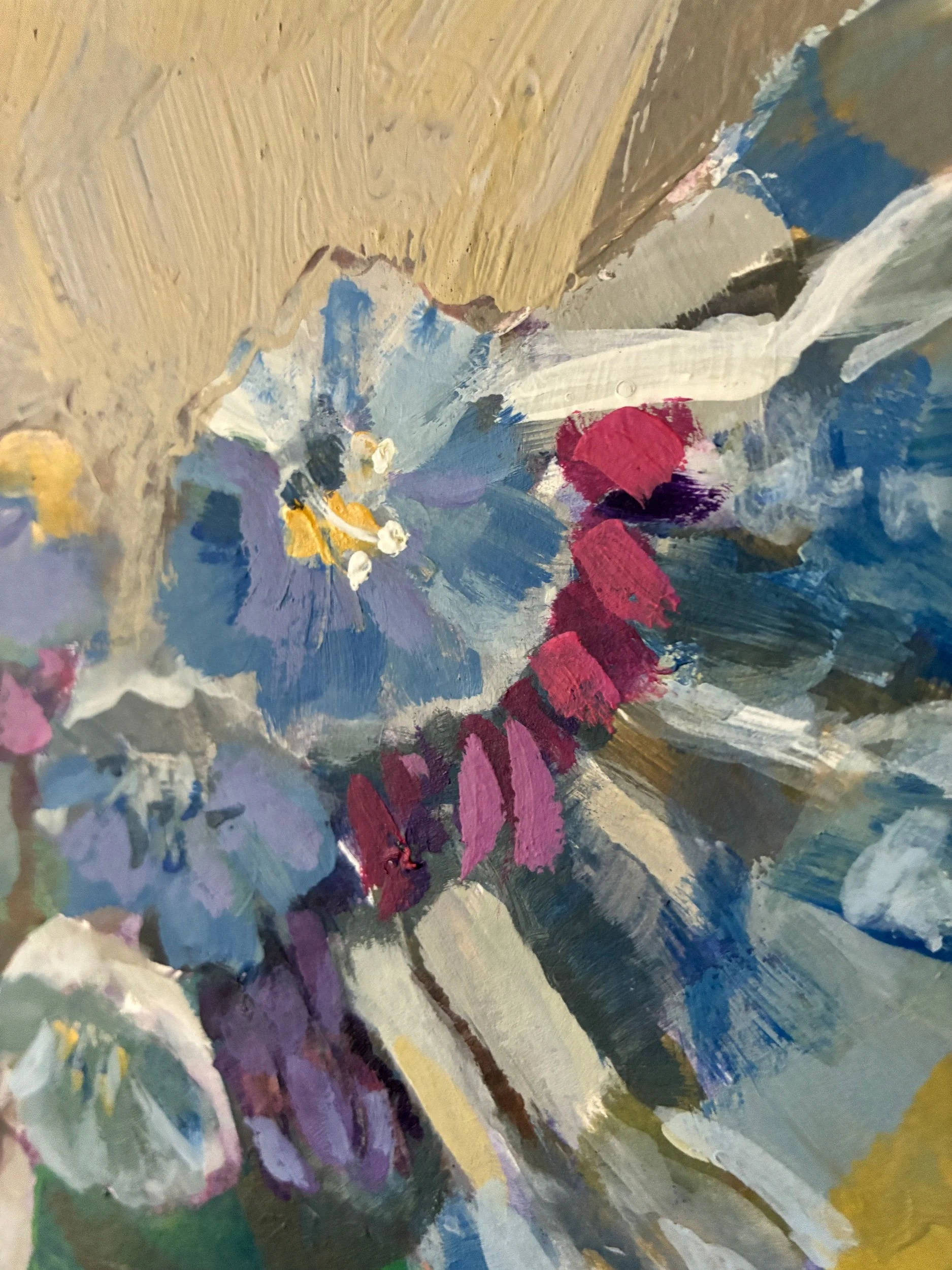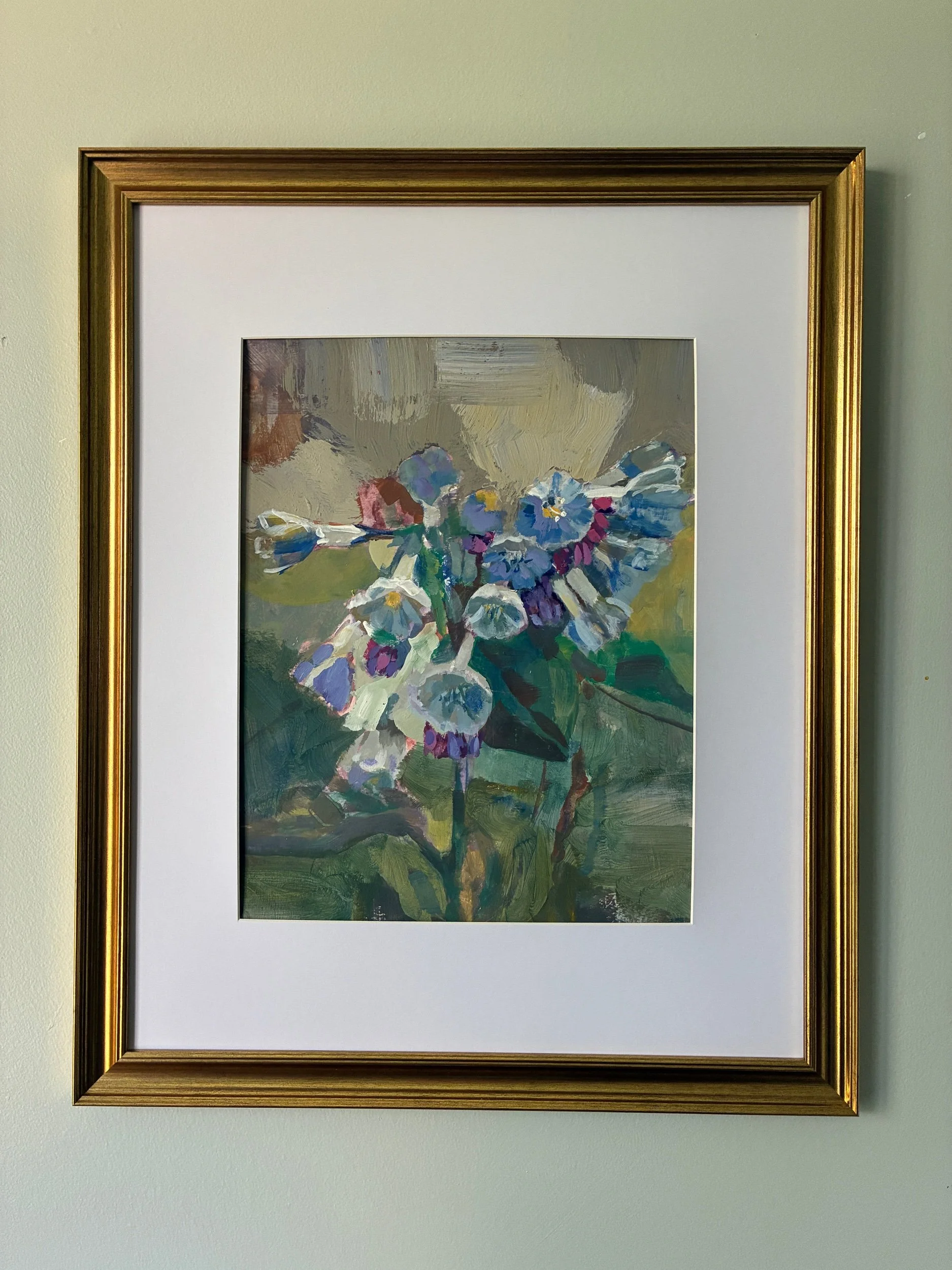 Image 1 of 5 Image 2 of 5 Image 3 of 5 Image 4 of 5 Image 5 of 5 Studio Study - Bluebells 2 Sale Price: $75.00 Original Price: $125.00 11x14” acrylic on watercolor paper. Framing available upon request. Add To Cart Added! 11x14” acrylic on watercolor paper. Framing available upon request.
